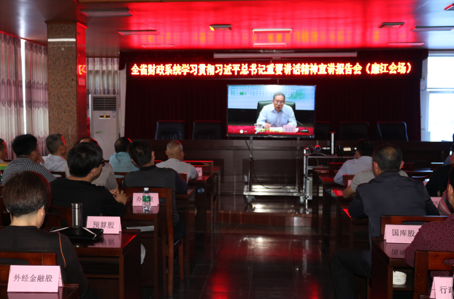 市财政局组织全体干部职工和财政所所长收看收听全省财政系统学习贯彻习近平总书记重要讲话精神宣讲报告会的视频会议。