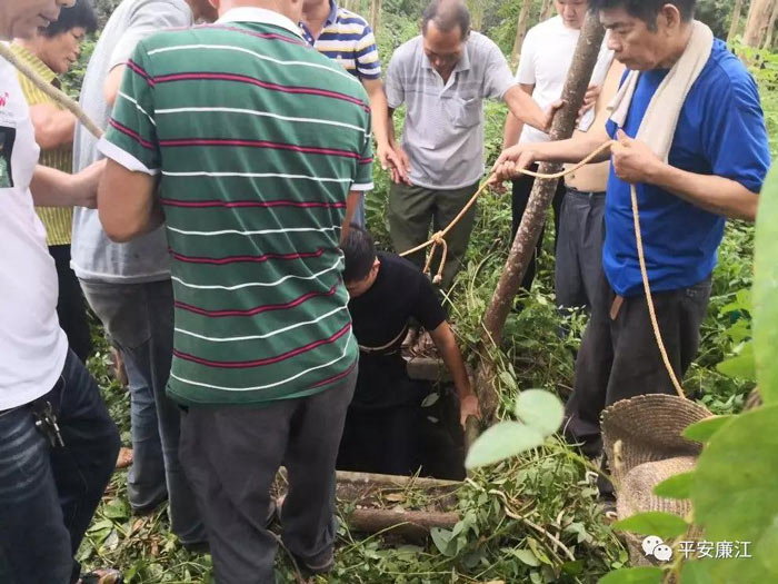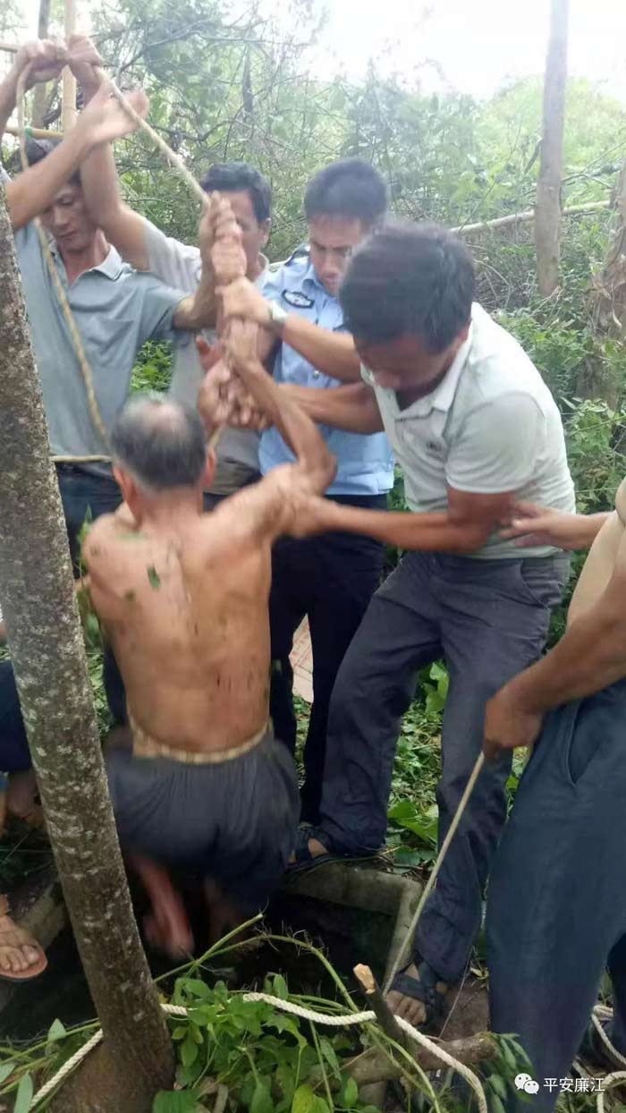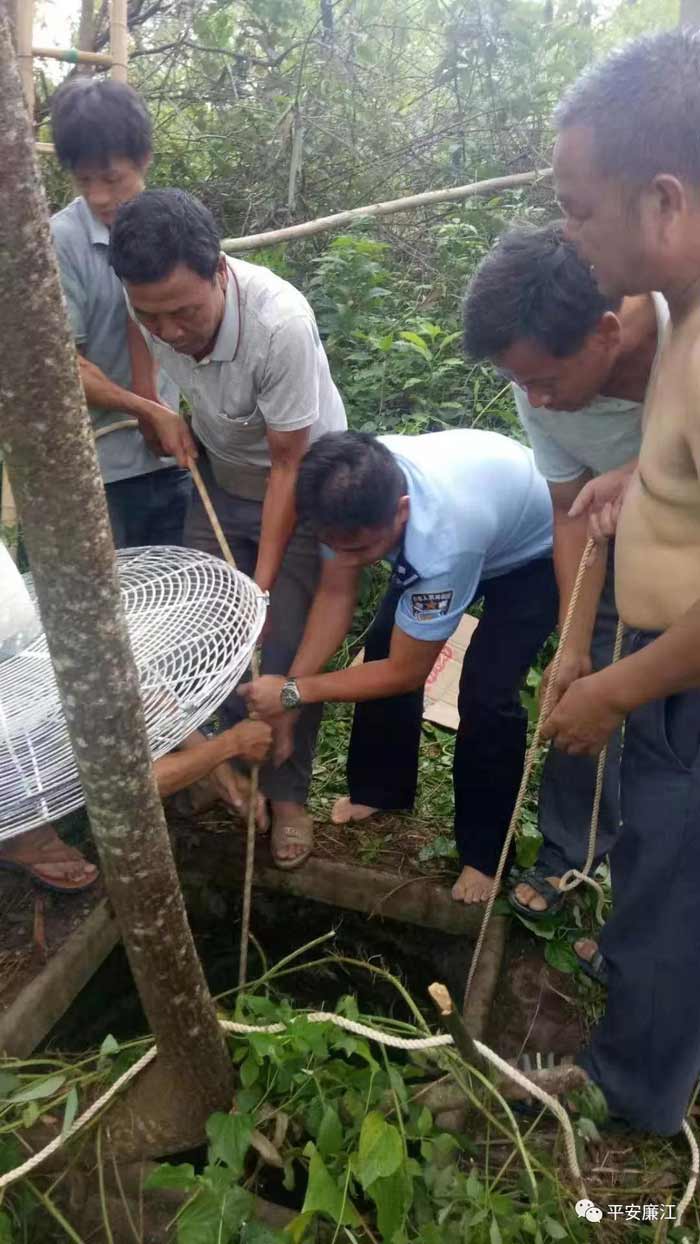 为尽快救人,民警迅速制定营救方案,由体能较好的辅警黎东盛下井,将麻绳套在两名被困人员的腋下和手腕处。套牢后,民警和现场群众合力顺利将两人营救出来。被困的两人被拉出井口的一瞬间,现场传来了村民们的热烈掌声和欢呼声,廉江公安又一次用实际行动践行“人民公安为人民”的服务宗旨。