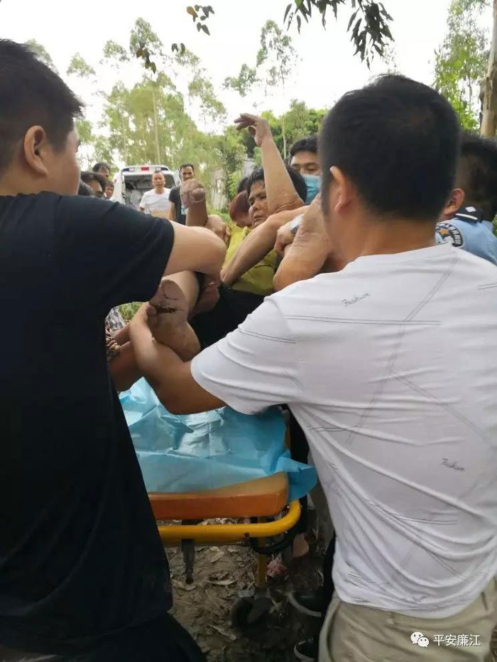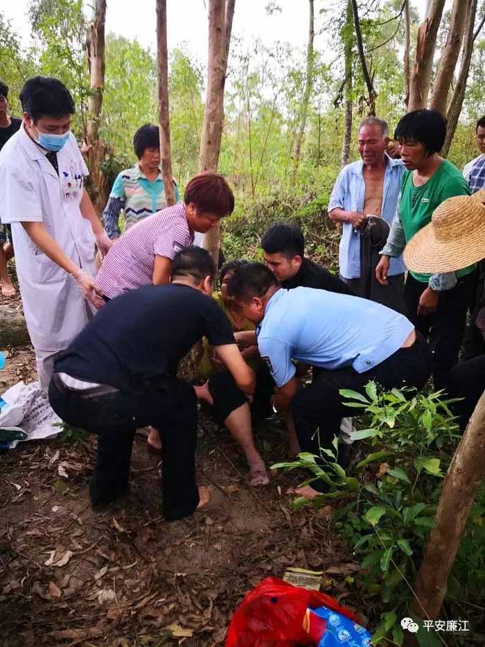 经了解,男子谢某与女子伍某是夫妻关系,营仔镇要垌村人。当天上午,伍某到林地喷除草剂,事发地杂草丛生,井口被杂草虚掩着,伍某一脚踩空掉入废弃井中。后其丈夫谢某见妻子迟迟未归便去找人,发现妻子坠井后,便召集村民帮忙,由其顺着木梯下井救人,结果体力不支双双被困。