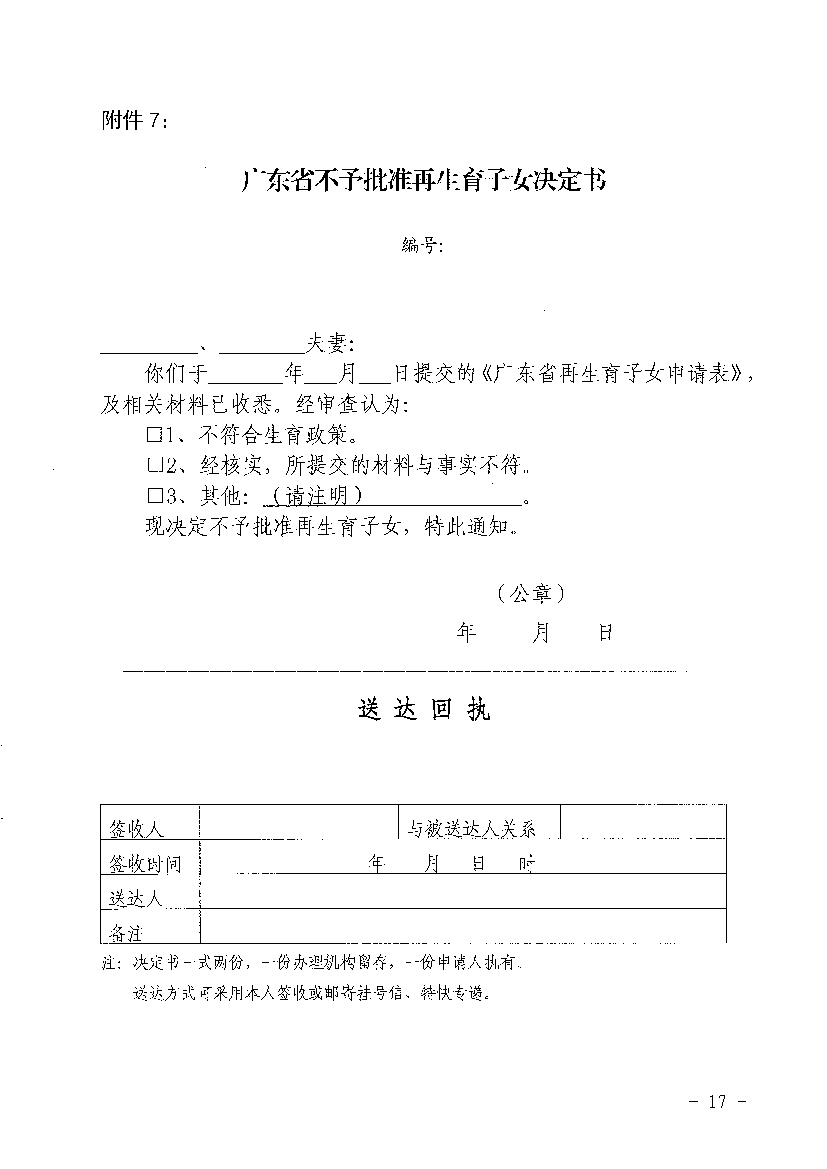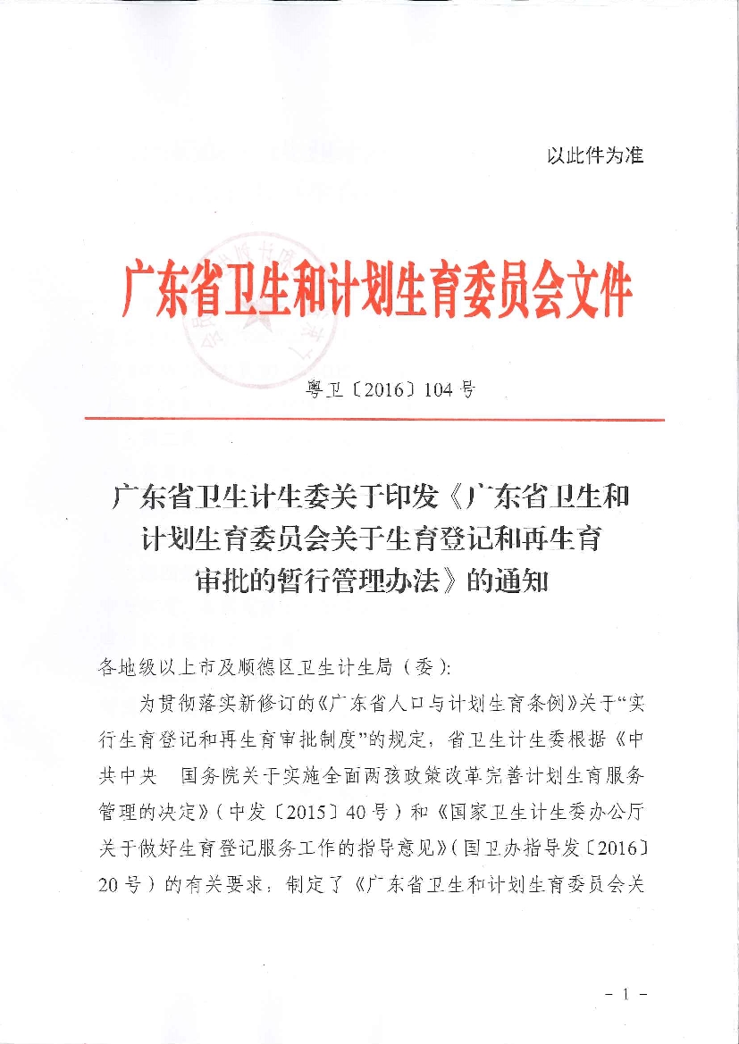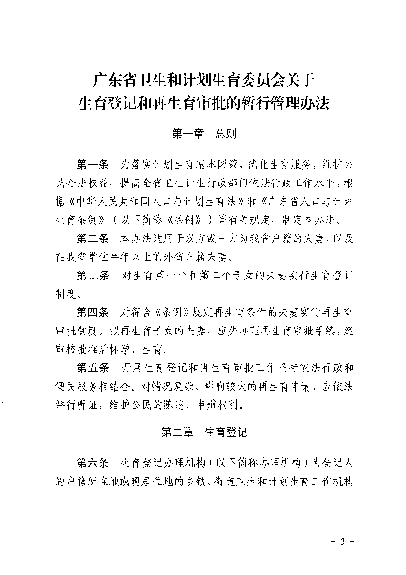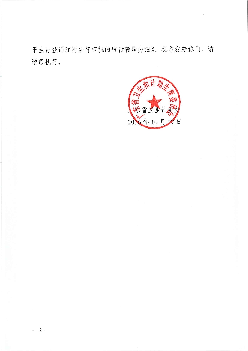 广东省卫生和计划生育委员会关于生育登记和再生育审批的暂行管理办法