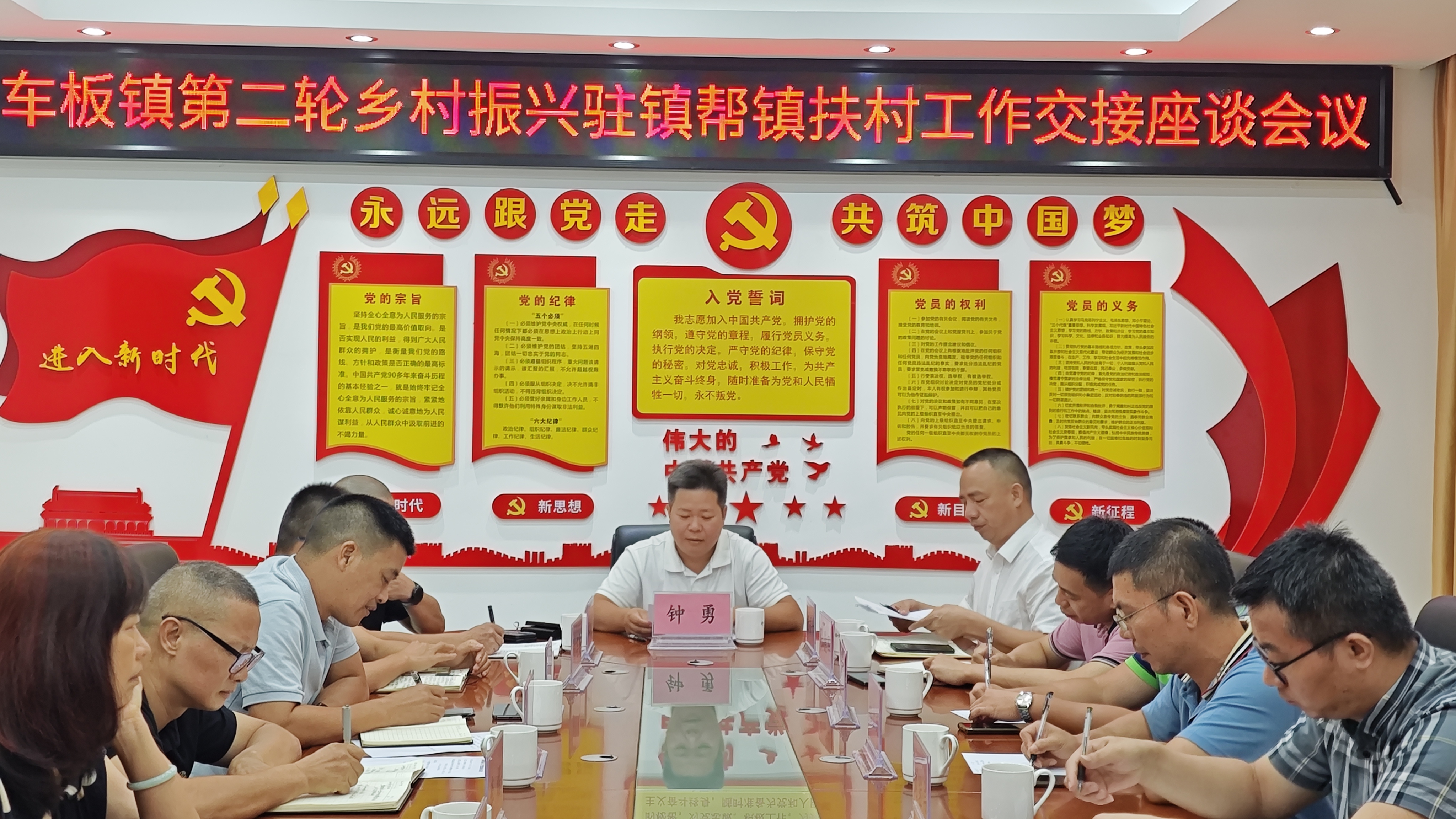 近日,车板镇召开第二轮乡村振兴驻镇帮镇扶村工作交接座谈会,会议总结了过去三年的工作成果,分享了宝贵的经验做法,推动驻镇帮镇扶村工作平稳有序轮换,齐心协力助推车板高质量发展。镇党委书记钟勇、镇党委副书记、镇长杨桥升、镇分管农业农村领导、各驻镇帮镇扶村工作队成员,党建办、农业办、荔枝江、龙头沙、陆地、旧埠村委负责人参加座谈会。