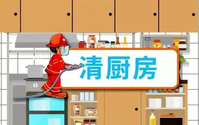 厨房是家庭用火最多的地方,清理厨房的重点是让油、布、纸等可燃物远离炉灶等火源。同时要定期对油烟机、燃气灶具进行油渍清理。