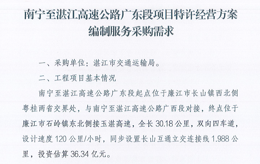 据近日消息:南宁至湛江高速公路广东段项目节约集约用地论证分析专章通过专家评审。