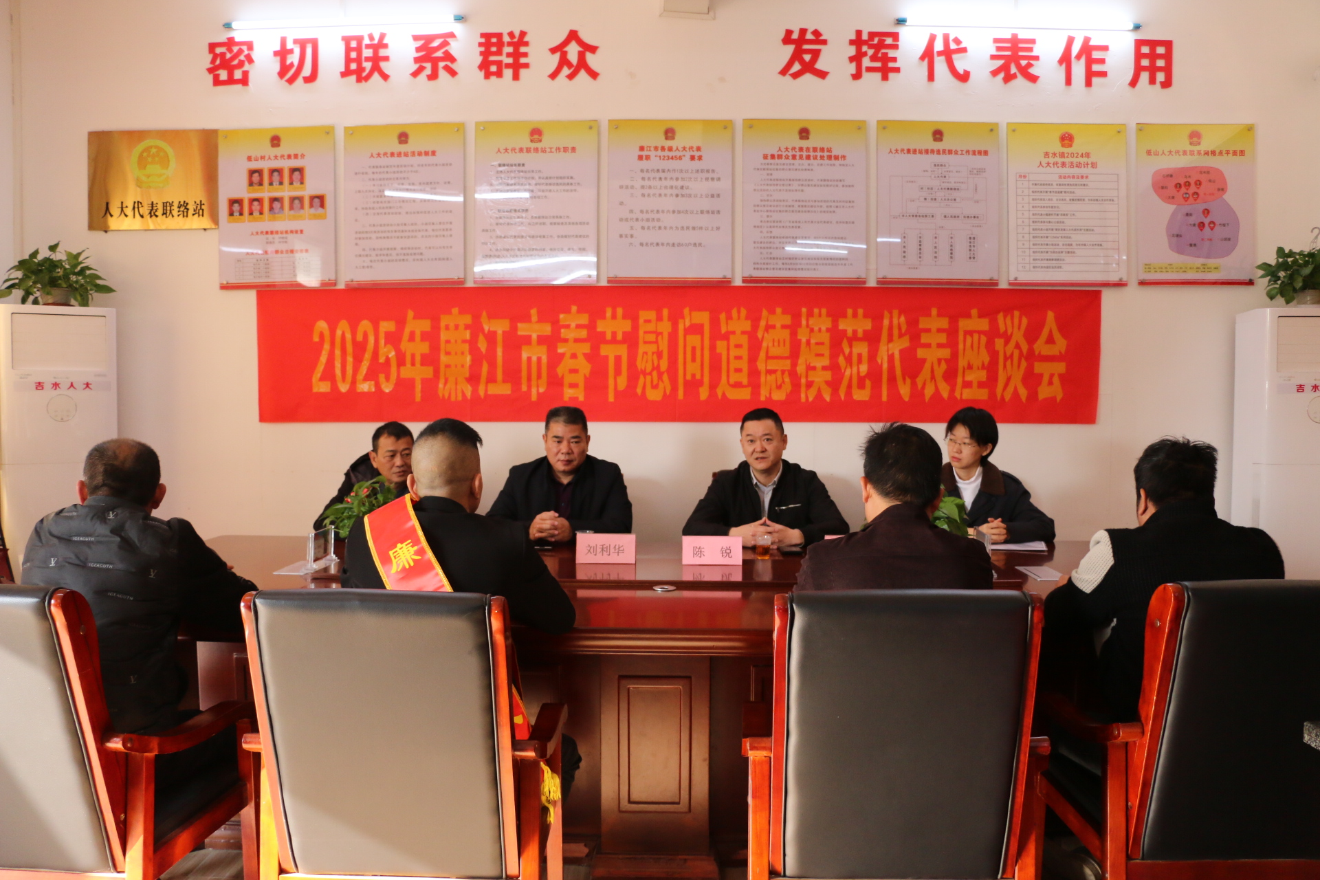 当天上午,市委宣传部常务副部长刘利华,吉水镇委书记陈锐、镇委委员林华东等领导一行首先来到了低山村委会开展2025年春节慰问道德模范代表座谈会,与廉江市“敬业奉献好人”钟敏成进行亲切交谈,送上诚挚的问候和节日的祝福;刘利华详细了解其生活、工作状况,并充分肯定了钟敏成热爱家乡、奉献人民的无私情怀,自强不息、砥砺前行的奋斗精神,勉励其要发挥好人榜样作用,积极传播真善美,大力弘扬敬业奉献精神,讲好好人故事,带动身边更多的人向上向善,营造良好的社会风气。