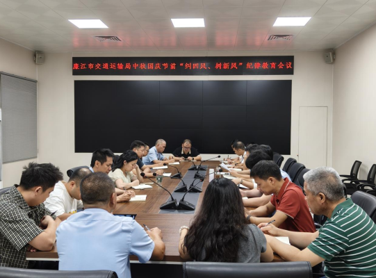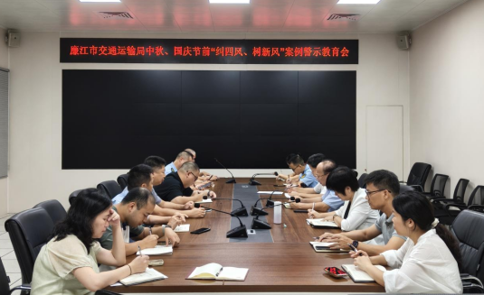 中秋、国庆将至,为深入贯彻习近平总书记关于全面从严治党的重要指示精神,锲而不舍落实中央八项规定及其实施细则精神,持续巩固拓展作风建设成果,廉江市交通运输局于2025年9月15日、9月29日先后召开中秋、国庆节前“纠四风、树新风”纪律教育会与警示教育会,通过“思想铸魂 + 案例警心”双轮驱动,为干部敲响廉洁警钟、拧紧思想“发条”。