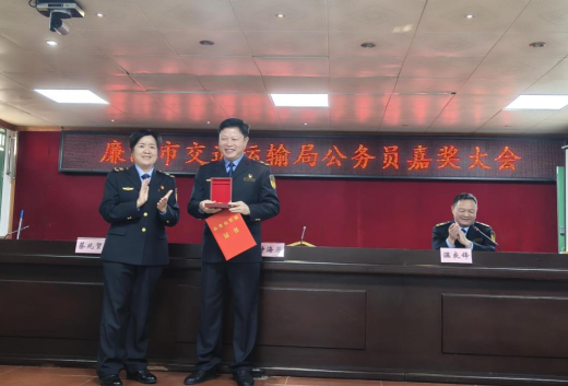 为表彰先进典型、弘扬奋斗精神,进一步激励全局广大公务员坚定理想信念、强化责任担当、提升履职本领,充分发挥年度考核奖励的正向激励与示范引领作用,12月8日,廉江市交通运输局隆重召开公务员表彰大会。会议由副局长温良锋主持,副局长钟海燕出席并为受表彰同志颁发奖章和荣誉证书,局全体公务员及下属事业单位主要负责同志参加会议。