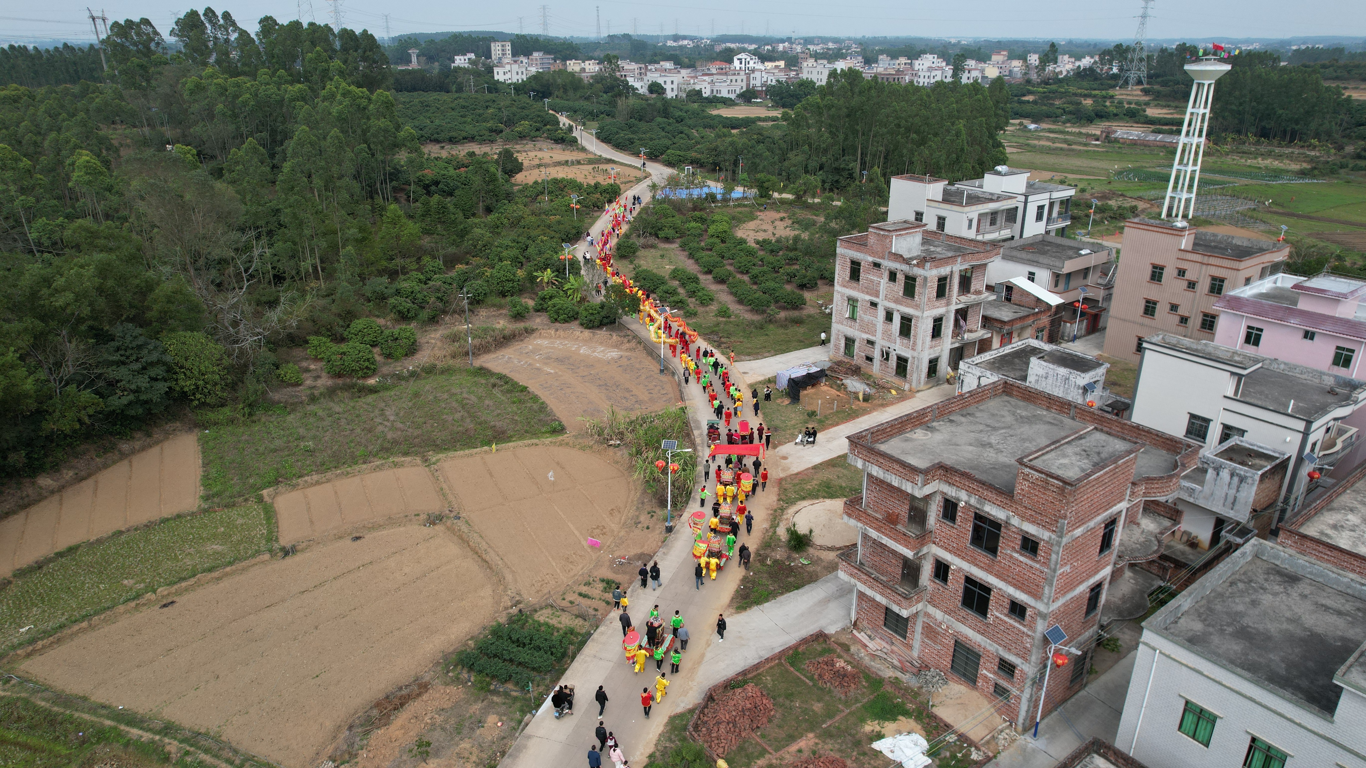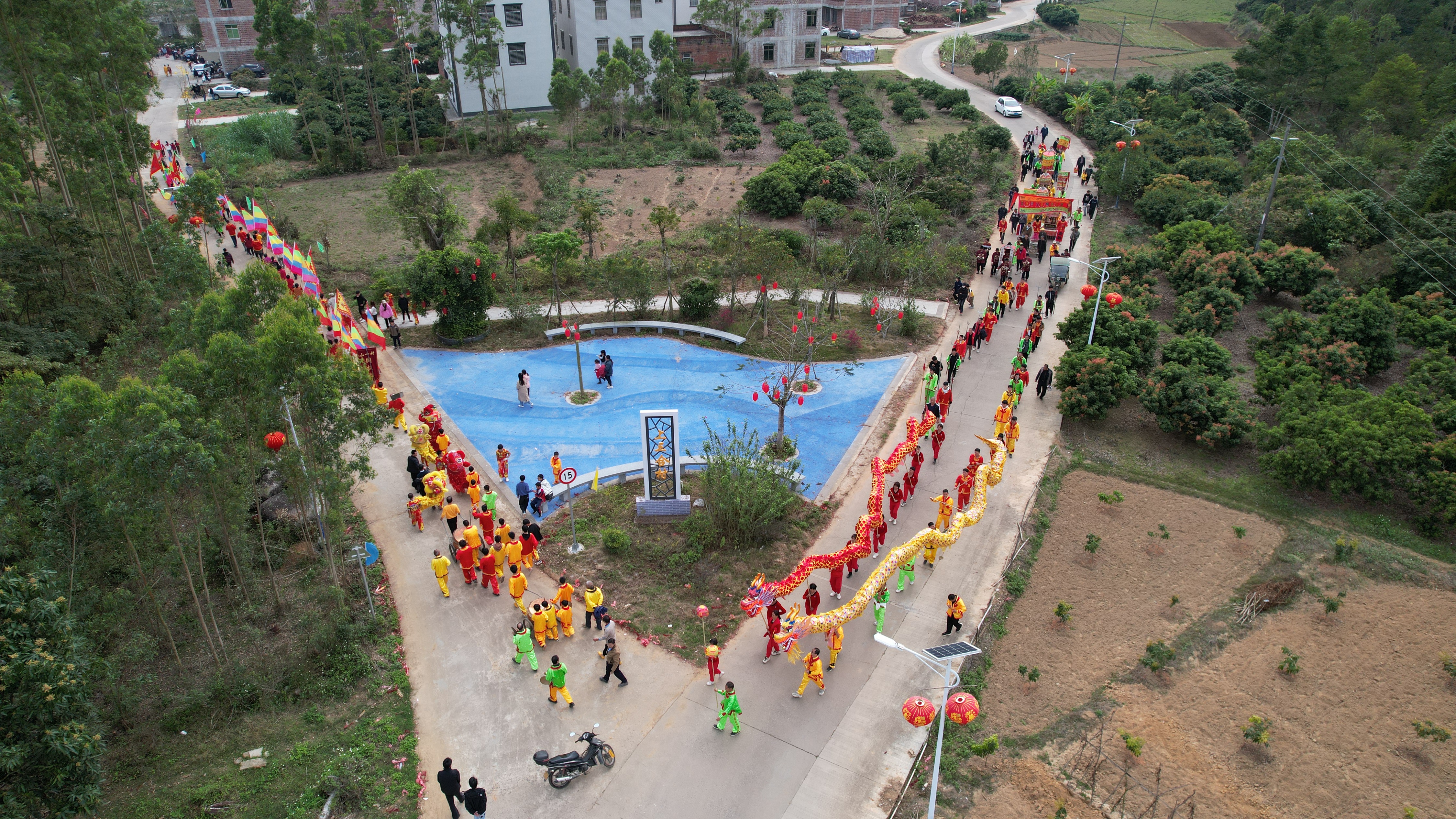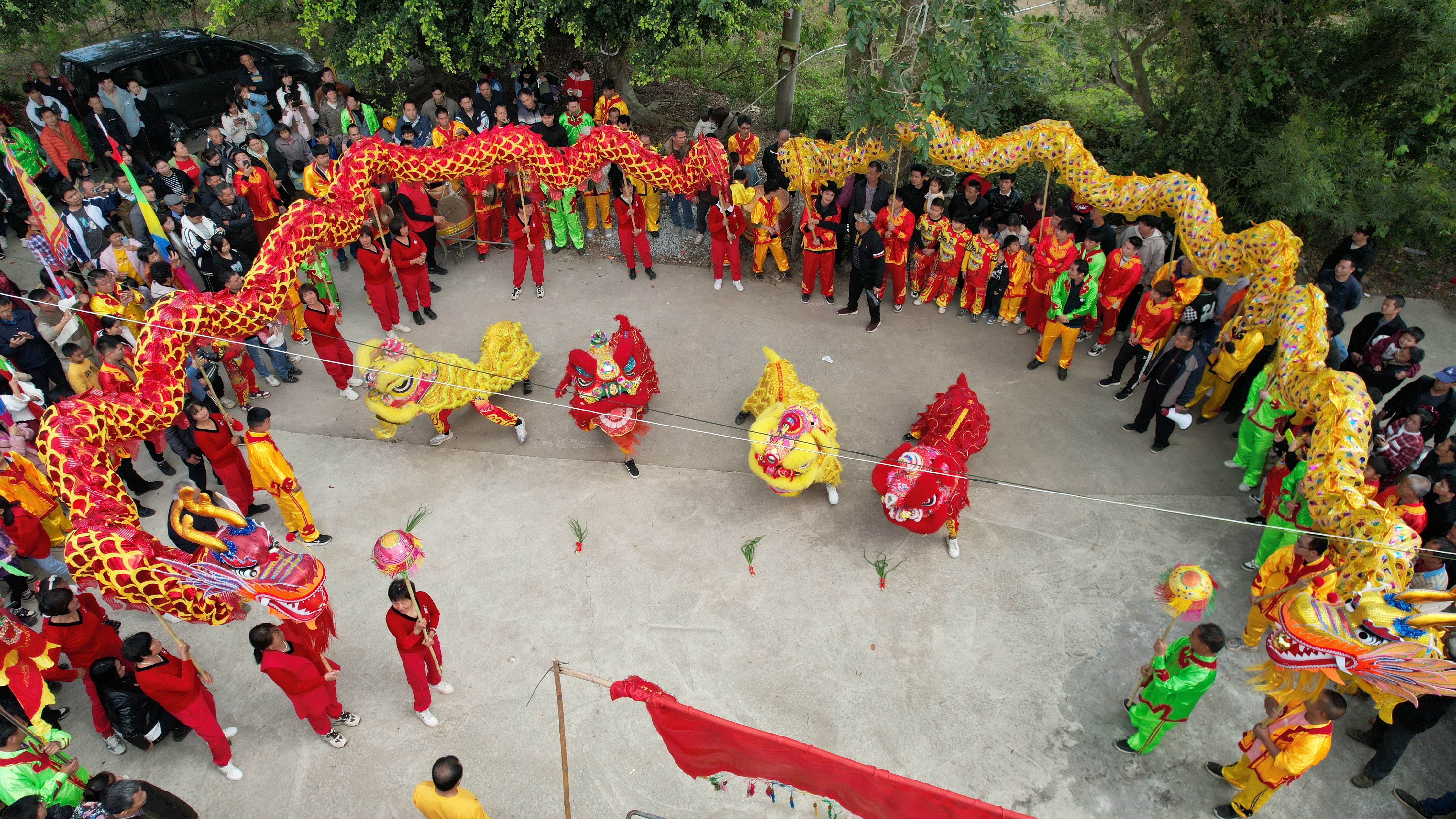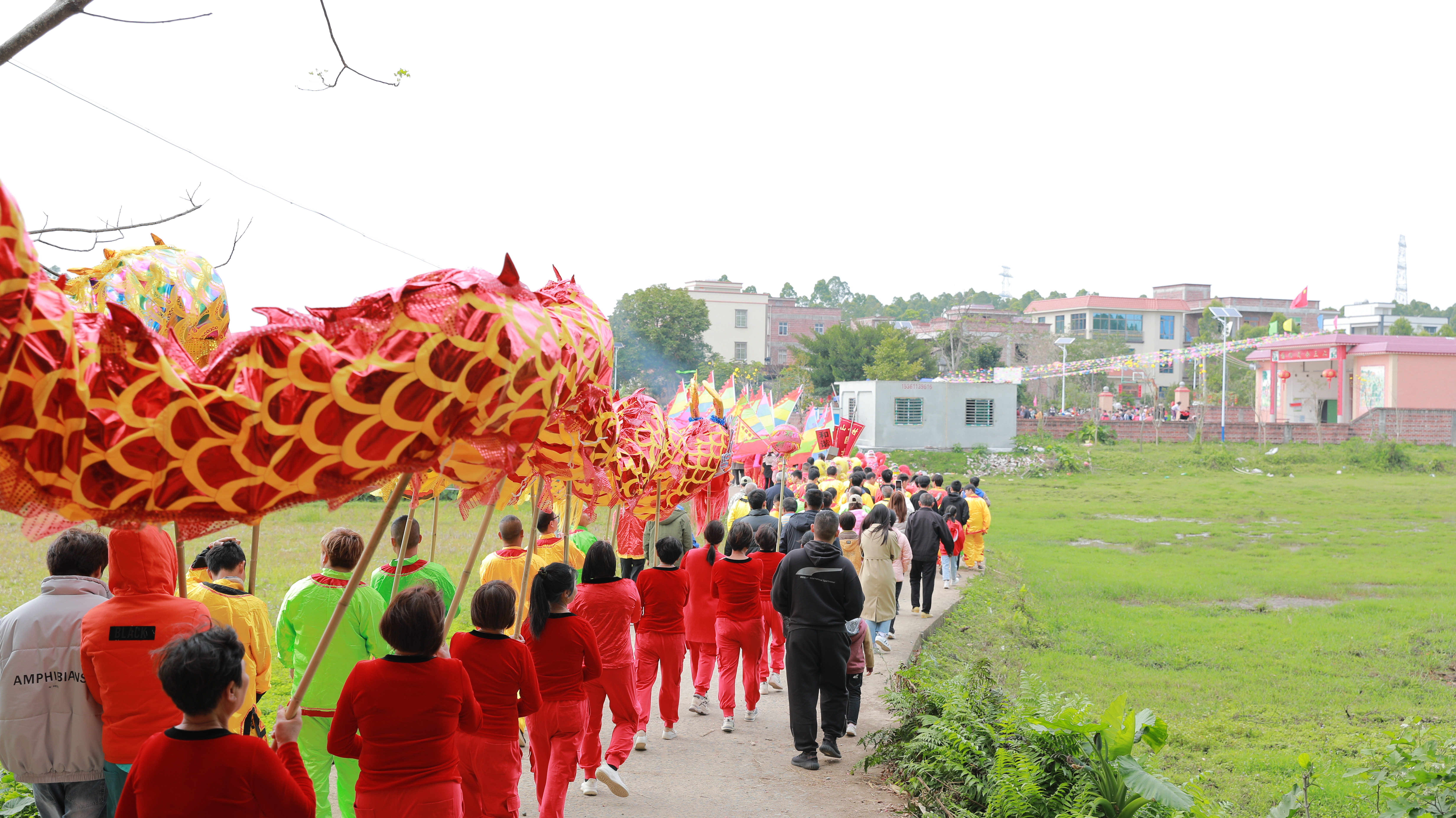 下午两点,舞狮、舞龙表演拉开了本次闹元宵活动的序幕。随着锣鼓声响起,数百人的巡游队伍沿着村道一路舞、一路演。喜庆的锣鼓铿锵有力、催人奋进,欢快的舞龙、舞狮活力迸发、激情昂扬,村民们在锣鼓声中祈愿龙年龙精虎猛、风调雨顺、国泰民安,大家尽情挥洒着新一年的喜悦和祝福。街道两旁挤满了围观的村民,大家纷纷拿出手机,拍摄照片、视频,记录着这美好的时刻。有村民表示,觉得很热闹、很气派,过节的氛围很浓厚。
