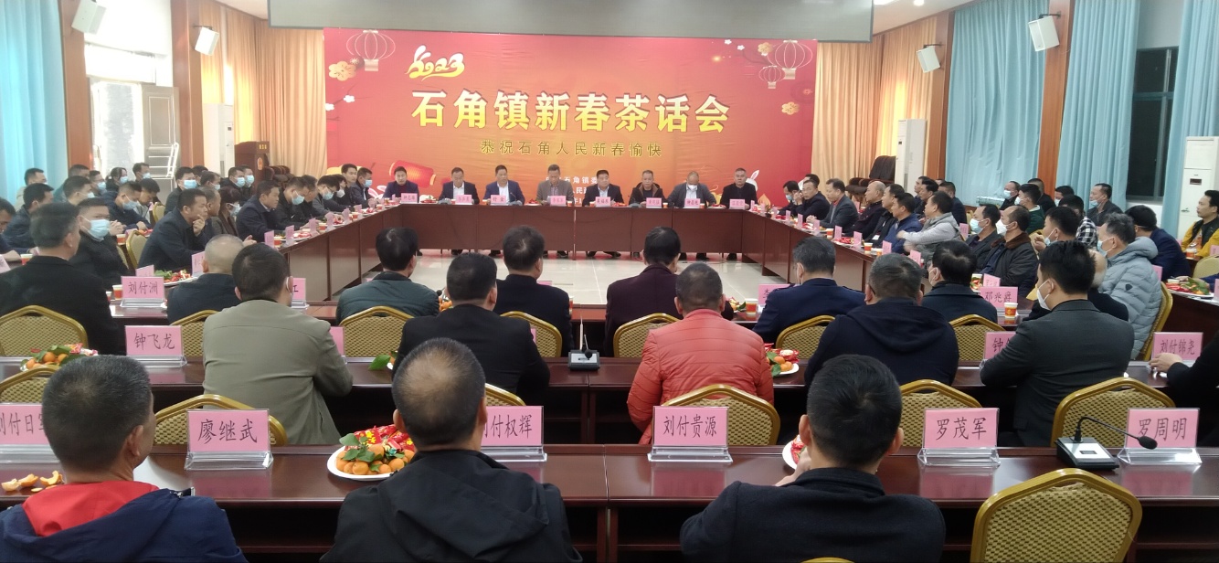 1月25日,石角镇召开2023年新春茶话会,该镇各界人士、乡贤代表欢聚一堂,共贺新春佳节,共商石角经济社会发展大计。 市人大常委会副主任李家军,副市长吴福东,石角镇党、政领导班子、各村委书记、外出乡贤代表共120多人参加了会议。 李家军、吴福东对石角镇一年来所做的工作给予充分肯定,对热心支持家乡发展建设的乡贤表示感谢。希望该镇经济发展要坚持规划引领,找准方向,积极优化营商环境,用心、用情做好招商服务,吸引更多乡贤企业将经济项目落户家乡,回报家乡;并希望外出乡贤们常怀家乡之情,常谋家乡的发展,常回家看看,持续支持教育促进会发展,为石角经济社会高质量发展贡献力量。 石角镇党委书记舒金主持会议,并介绍了该镇经济社会发展,招商引资以及教育发展促进会情况。