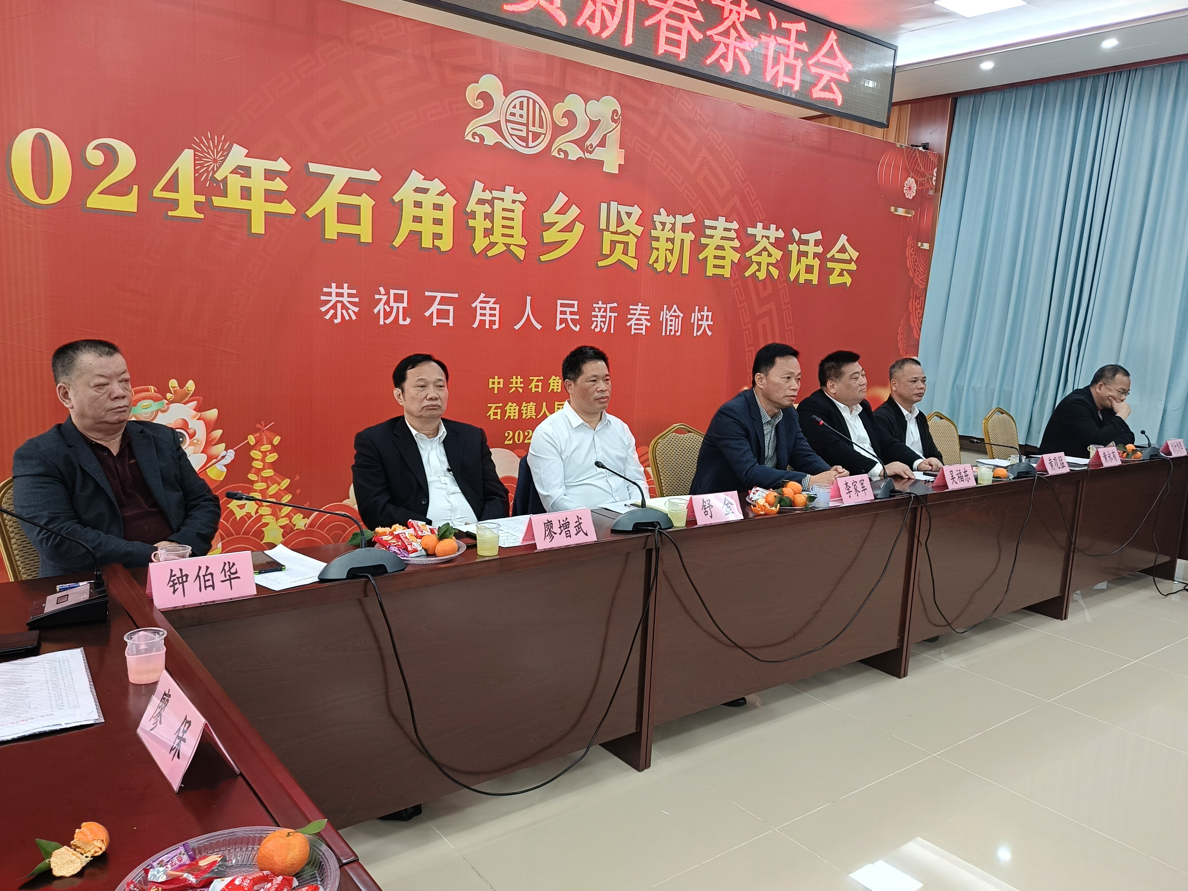 2月13日,石角镇举行2024年乡贤新春茶话会。市人大常委会副主任李家军,副市长吴福东,石角镇党政领导班子,各村(社区)党支部书记,乡贤代表等120多人参加茶话会。共叙乡情,共谋发展,为石角的经济社会发展出谋划策。