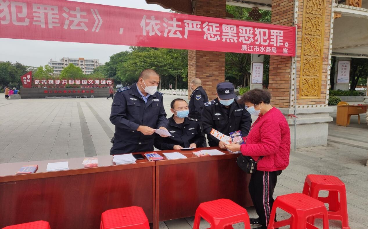 根据上级部门的工作要求,为深入学习贯彻党的二十大扫黑除恶常态化的重大决策部署,持续深化贯彻《反有组织犯罪法》宣传工作,营造扫黑除恶斗争浓厚氛围,廉江市水务局于12月7日在廉江市人民公园开展扫黑除恶常态化宣传活动。