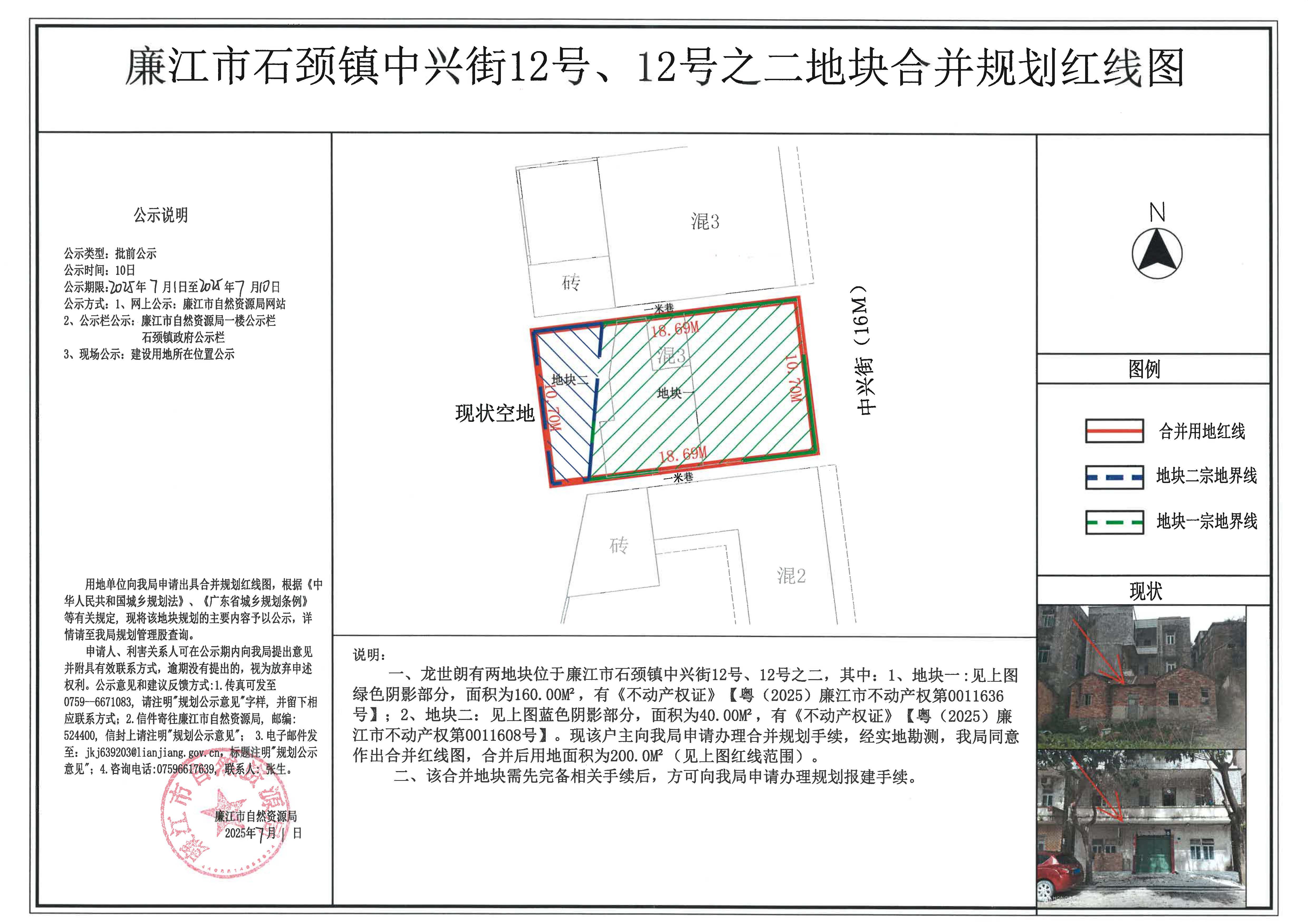 石颈镇中兴街12号、12号之二地块合并红线图批前公示