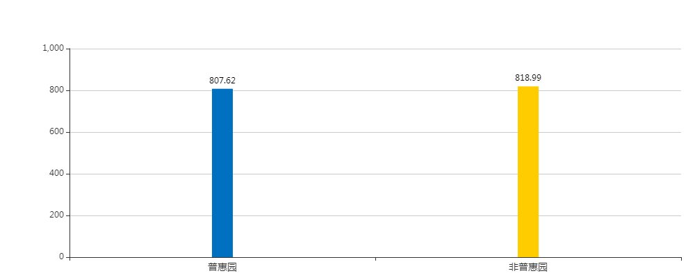 非普惠园总分平均分值818.99分,其中单项指标平均分值:办园条件199.80分,安全卫生180.57分,保育教育158.45分,教职工队伍183.82分,内部管理96.35分。