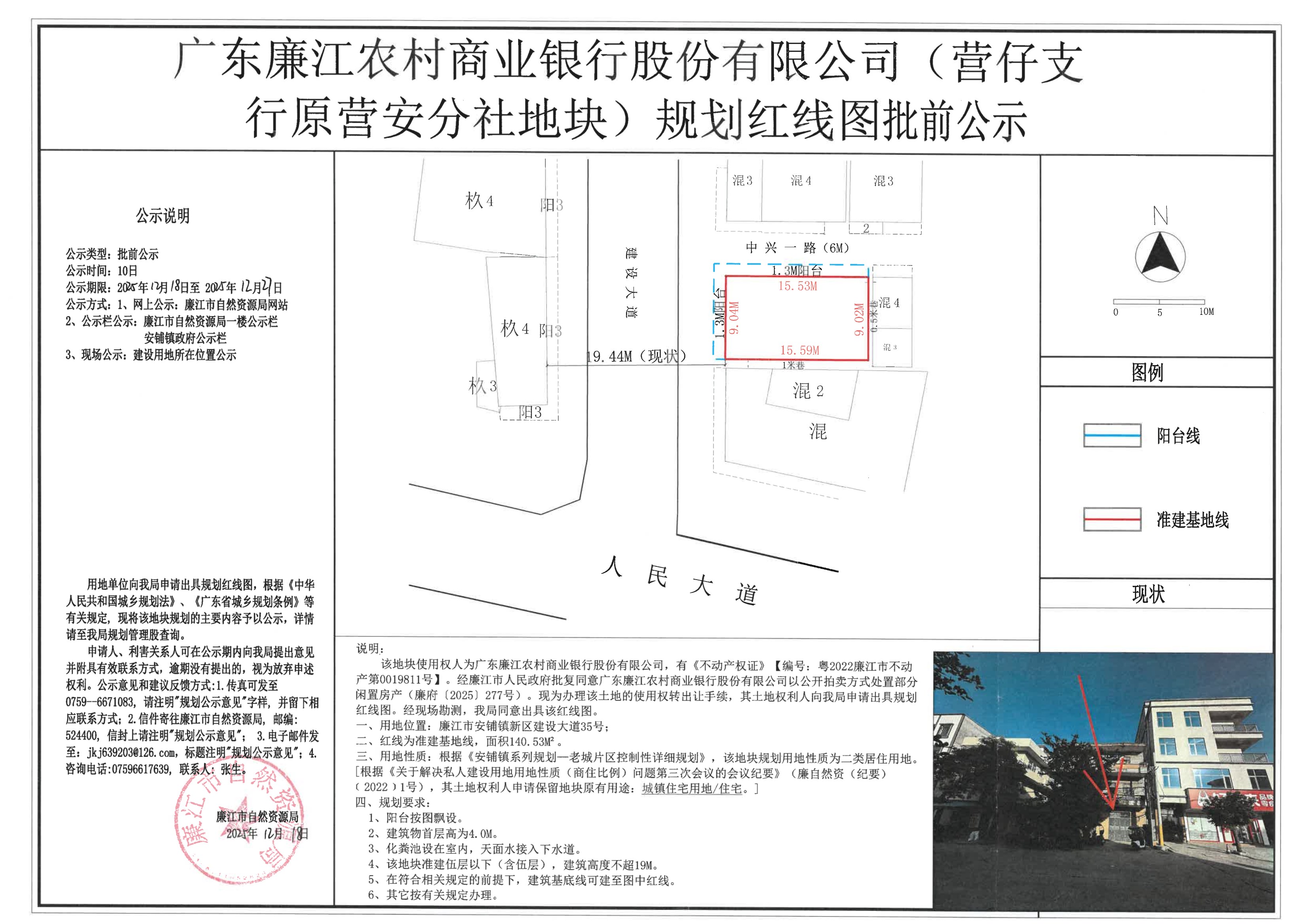 广东廉江农村商业银行股份有限公司(营仔支行原营安分社地块)红线图(规划条件)批前公示
