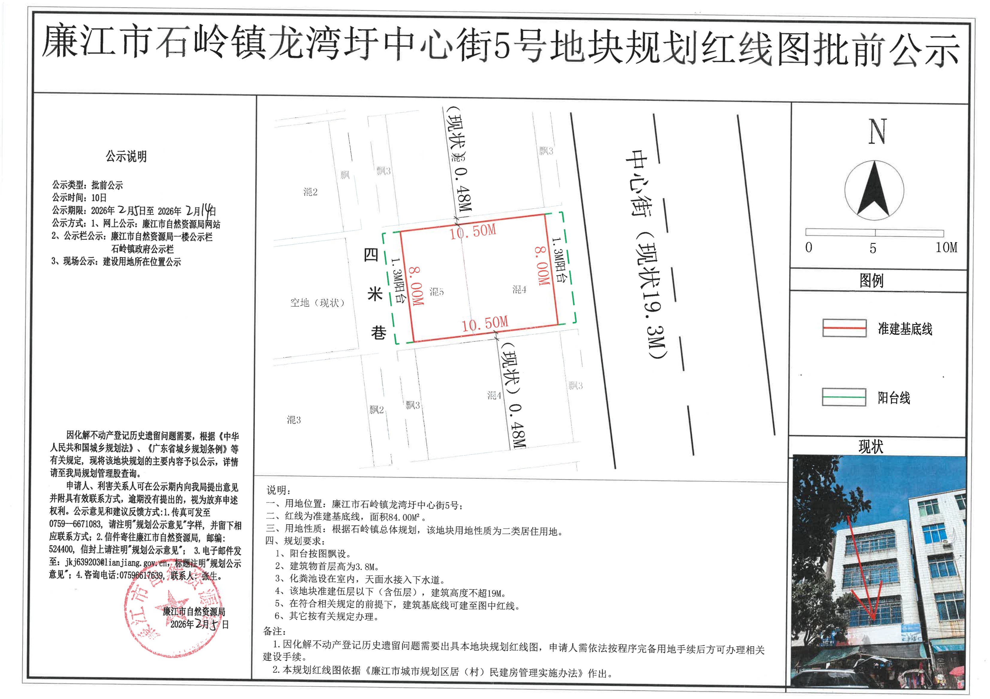 石岭镇龙湾圩中心街5号地块规划红线图批前公示