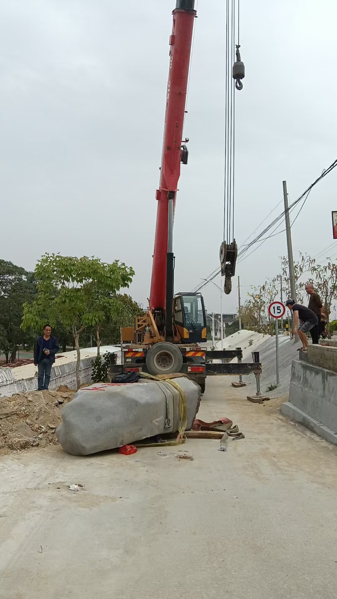 2025年4月12日,文*意打电话给郑*,叫郑*第二天(4月13日)上午从廉江市安铺镇戚*石材店将下潮村村牌石头吊装到下潮村。当天,郑*安排钟*超、陈*完成该项吊装工程,同时联系一辆东风牌货车帮忙运村牌石头。