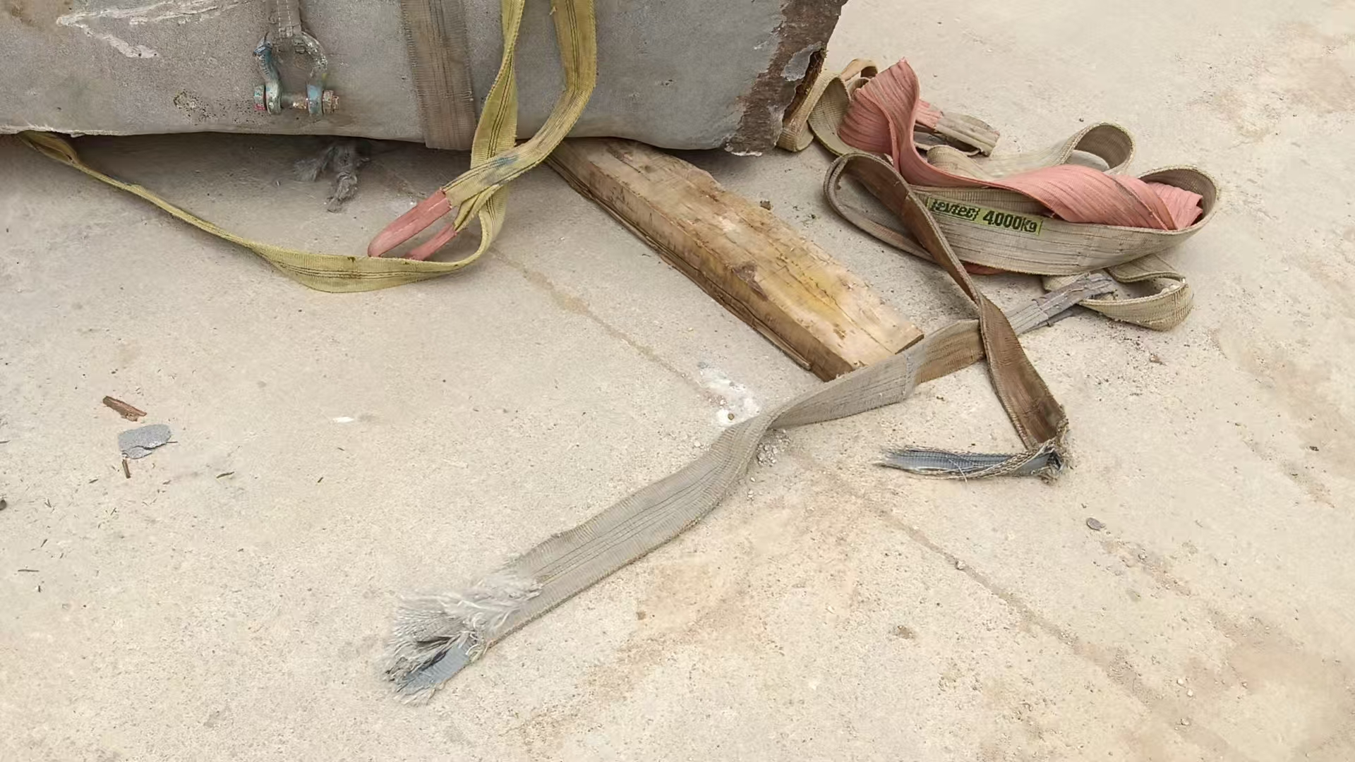 其最大承受量4t,吊装现场断裂的4t吊带是“百韧吊带”,从2025年2月起开始使用。事发时起吊石头采用两条4t吊带,由于吊带磨损和受力不均衡,致使第一条吊带被磨损断裂,引发第二条吊带无法承受村牌石头重力而崩断,最终两条吊装作业的4t吊带均已断裂,村牌石头掉落。