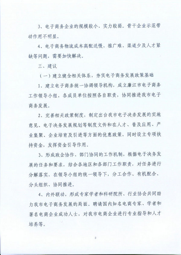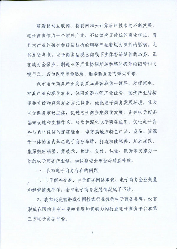关于加快我市电子商务发展的建议