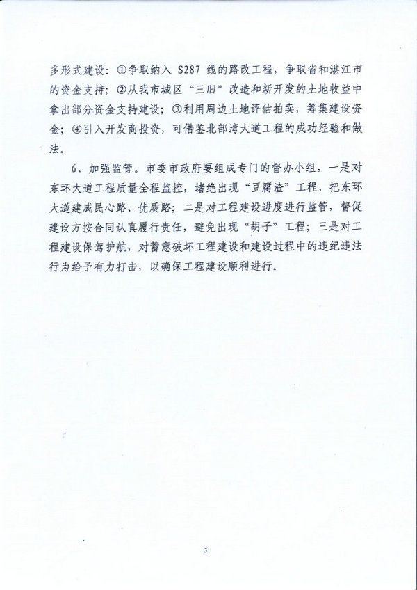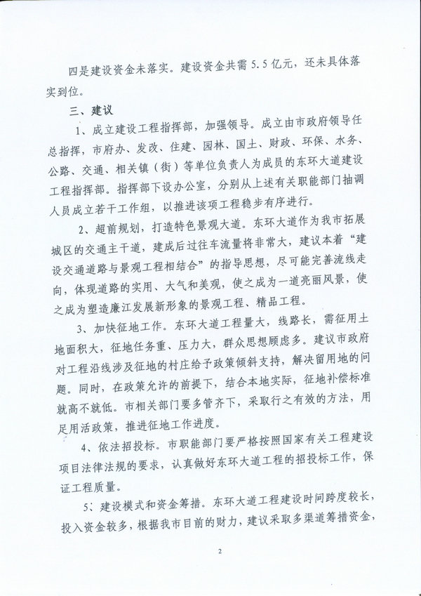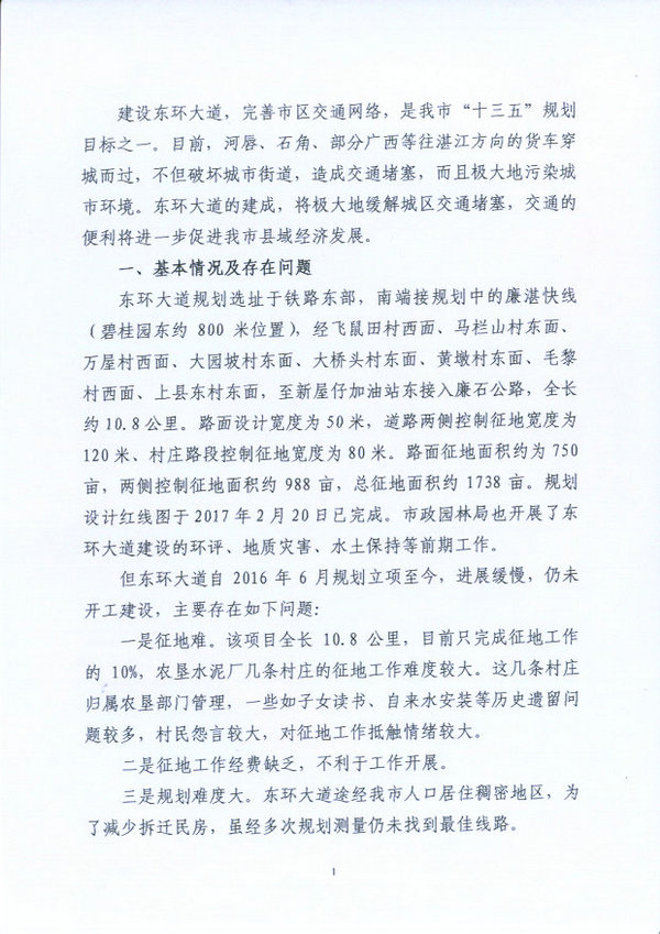 关于加大力度推进东环大道规划建设的建议